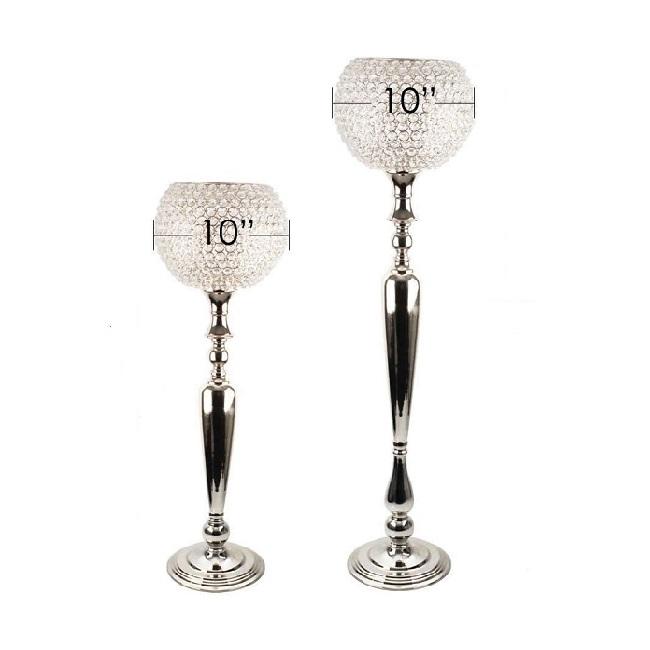 Romantic Metal Crystal Pillar Candle Holder Cylinder Tall Candlestick for Wedding Centerpiece
