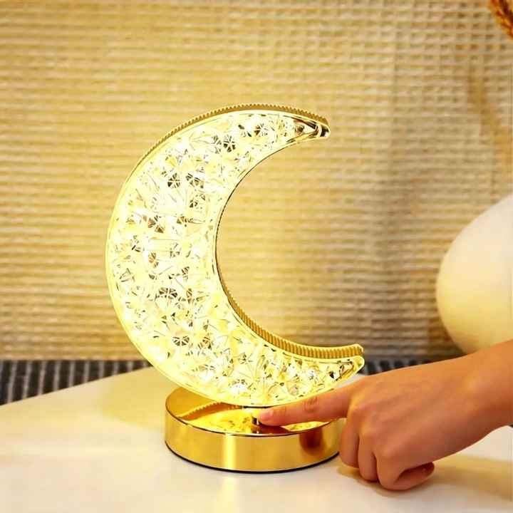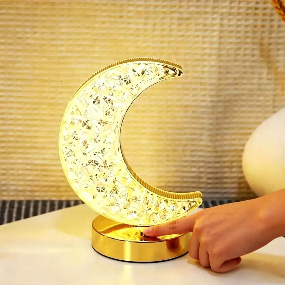 Romantic Moon Shape LED Table Lamp USB Rechargeable Touch Control 3D Crystal Night Light for Bedroom Decor & Gift
