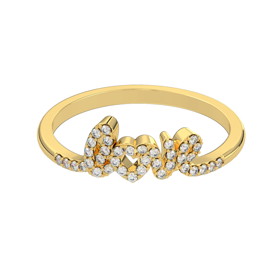 Romantic Style 10K Real Gold Love Letter Rings Brilliant Cut CZ Stones Calista Jewelry's 316L Handmade Vietnam Party Gift for