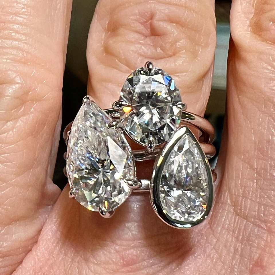 Romantic Three Stone Wedding Ring with Pear Oval Moissanite Diamond original 925 Silver for Party Proposals and Special Gifts