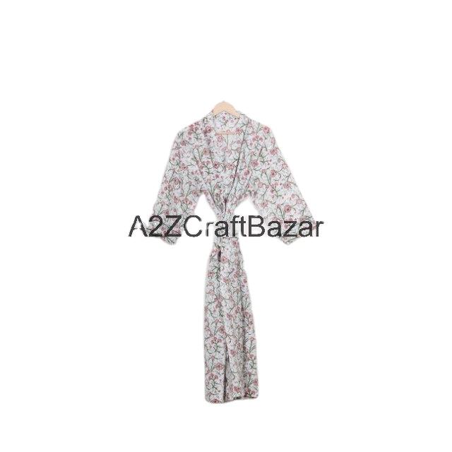 Romantic Vintage Women's Kimono Robe Hand Block Floral Print 100% Cotton Free Size Smooth and Soft Winter Nightwear Gown