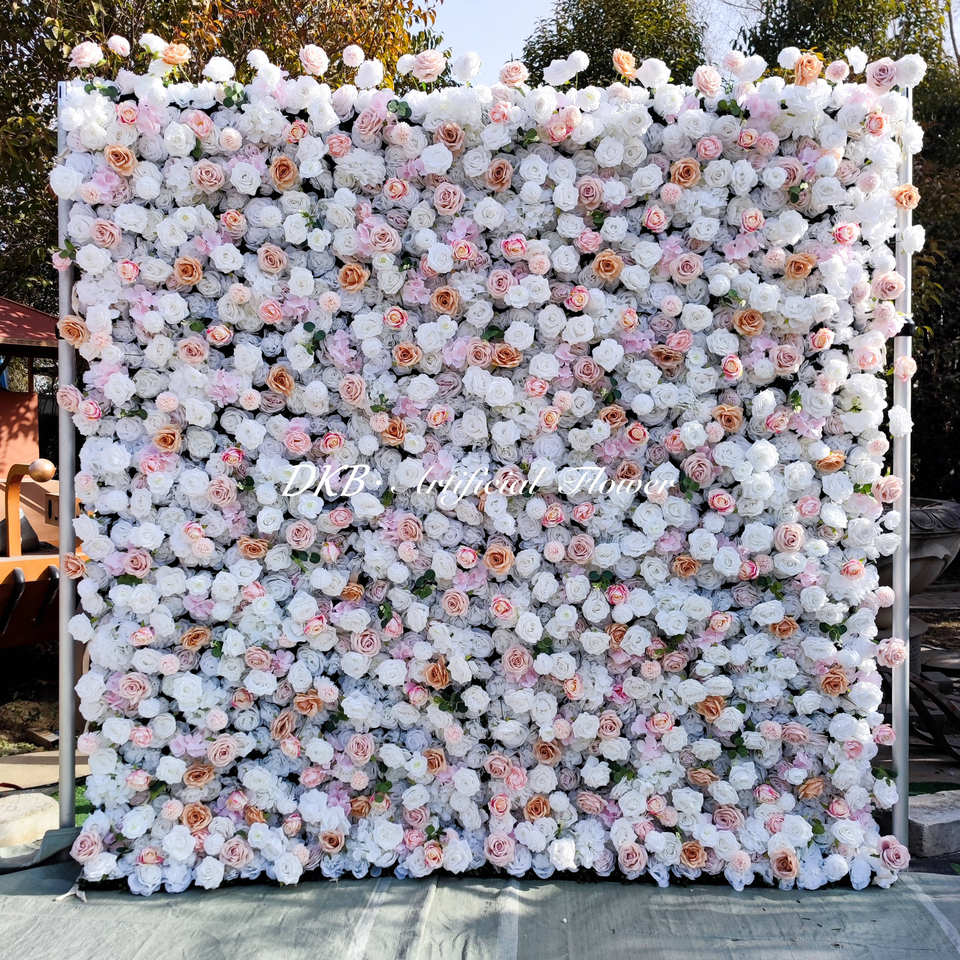 Romantic Wedding Background Decoration Custom Real Touch 3d 5d Flower Wall Arch Pink White Flower Backdrop Wall