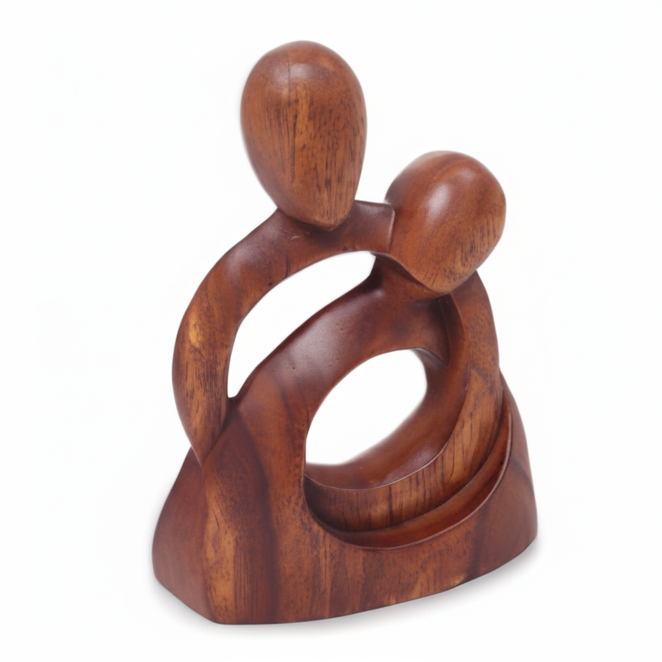 Romantic Wood Sculpture, Brown, 8" Tall Eternity of Love Romantic brown wood sculpture handmade couple love art decor