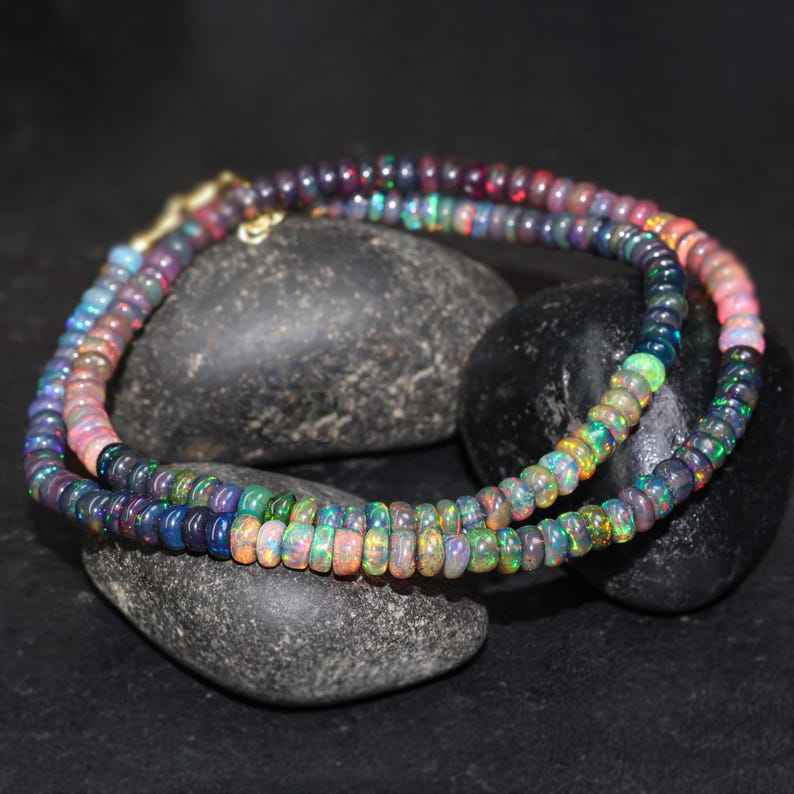 Rondelle Black Fire Opal Beaded Necklace For Women Vintage Fire Opal AAA Ethiopian Opal Necklace Christmas Gift For Her