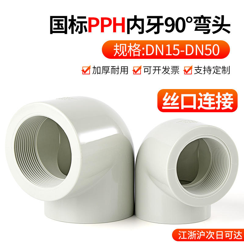 Rongsheng PPH Elbow 90 Degree Internal Thread Connector Pipe Fitting White Composite Pipe Joint