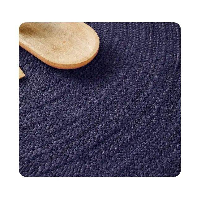 Room Decorating Hand Braided Oval Jute Rug Navy Blue Color India Modern Organic Natural Round Jute Rug Premium Quality
