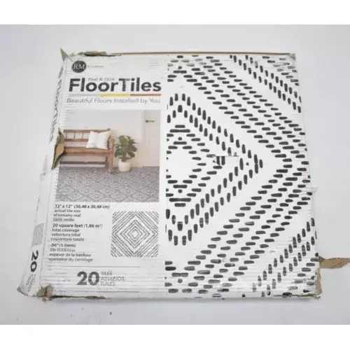 RoomMates Santorini Peel & Stick Floor Tiles 20 Pack Black/White Premium PVC Polished Tiles for Interior Use Firebrick Function
