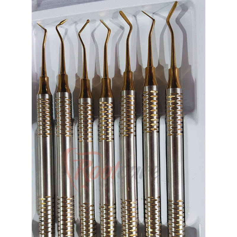 Rootcare Premium Dental Composite Filling Tools Kit 6 Pc Gold Titanium Plasma Coated Steel Resin dental Set Surgical Instruments