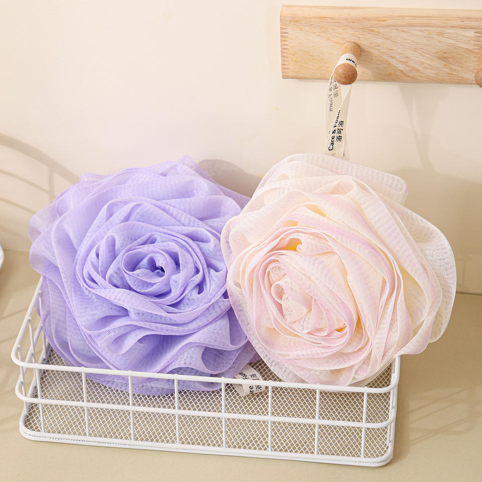 Modern Style Rose Bath Balls Soft Skin Friendly PE Material Not Easy to Scatter Bubble Net Scrubbing Towel with Flower Balls