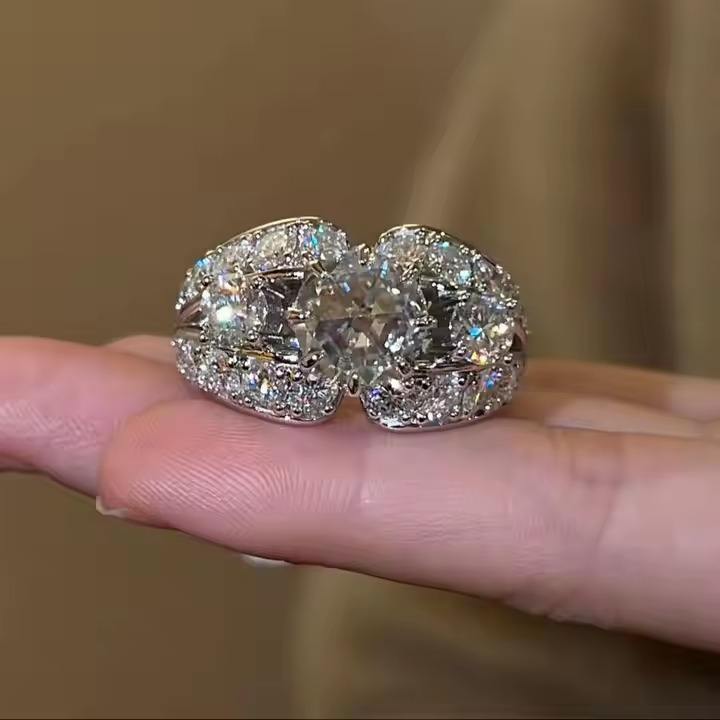 Rose Cut Original Moissanite Diamond Engagement Ring Luxury 925 Sterling Silver Wedding Band for Women Gold Gift for Her