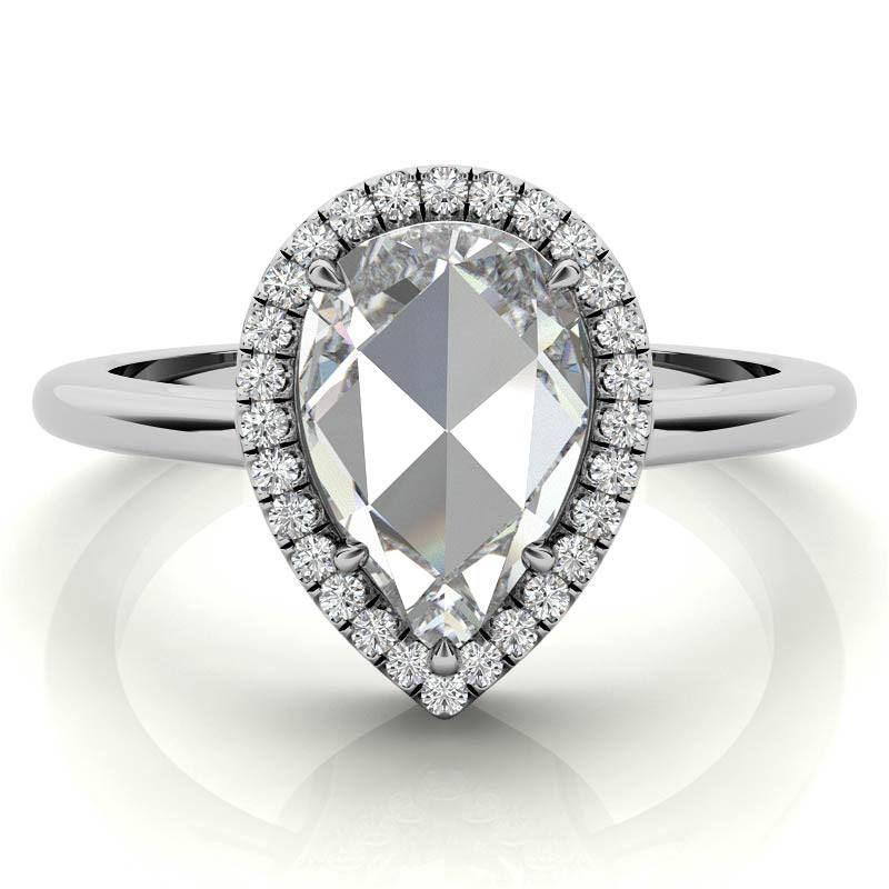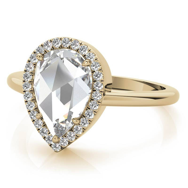 Rose Cut Pear Lab Grown Diamond Halo Set Engagement Ring in 14K Solid Gold Wedding Fine Jewelry for Party or Anniversary Gift