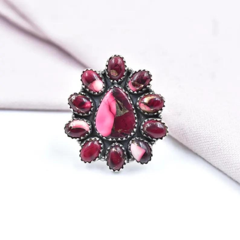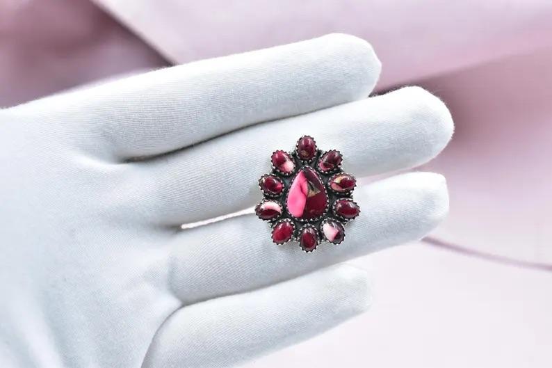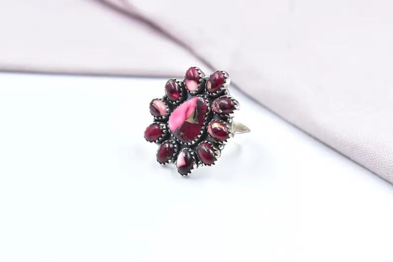 Rose Dahlia Turquoise Sterling Silver Bezel Setting Adjustable Ring Handmade Vintage Gold Plated 925 Certified Unisex Wedding