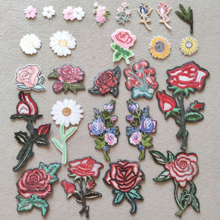 Rose Flowers Patches Clothing Embroidered Stripes Badges Iron on Transfer Appliques Stickers for Clothes