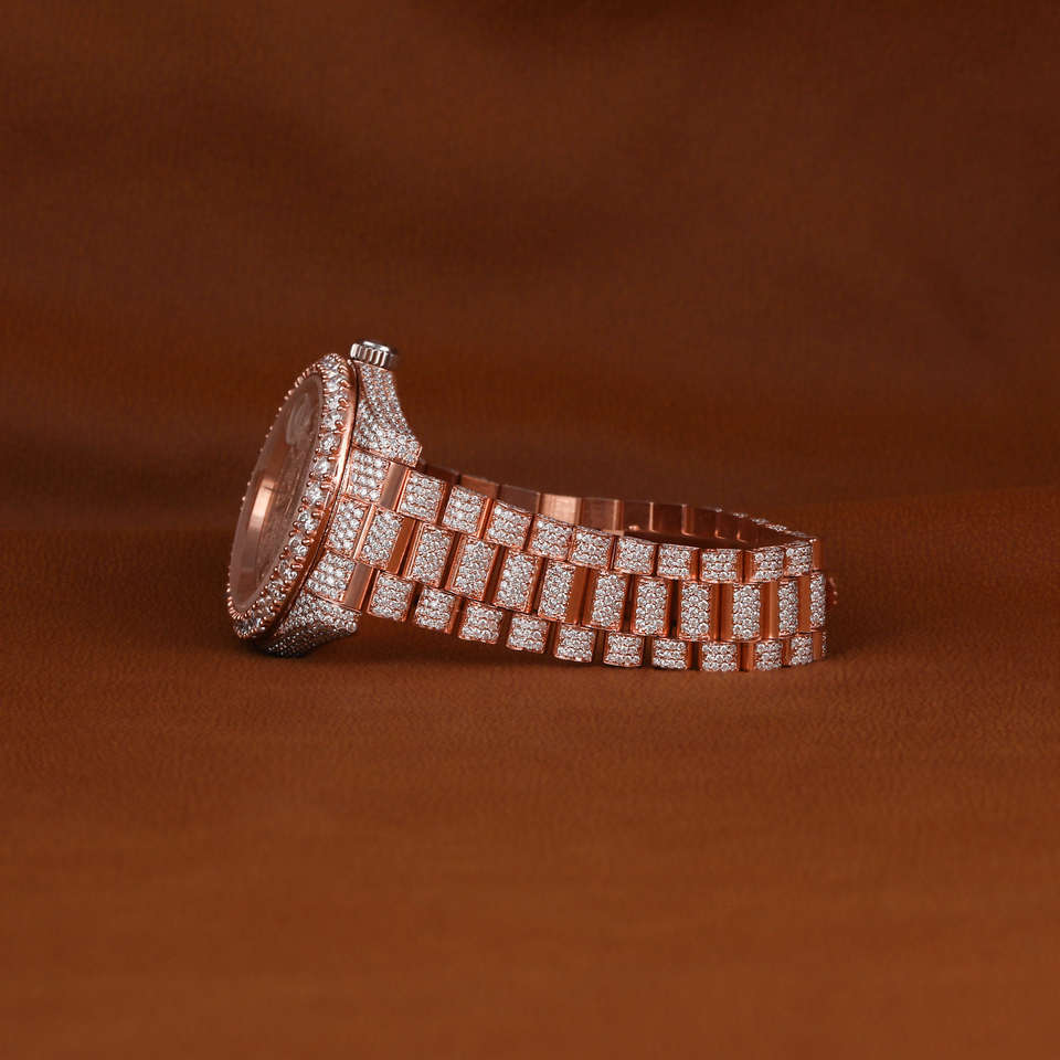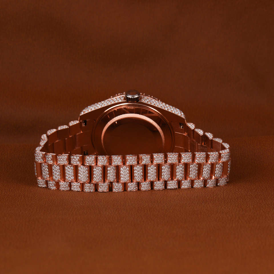 Rose Gold Color Dial Full Iced Moissanite Stainless Steel Luxurious Antique Fashion Watch Vintage Dial Hip Hop Wrist Custom Hand