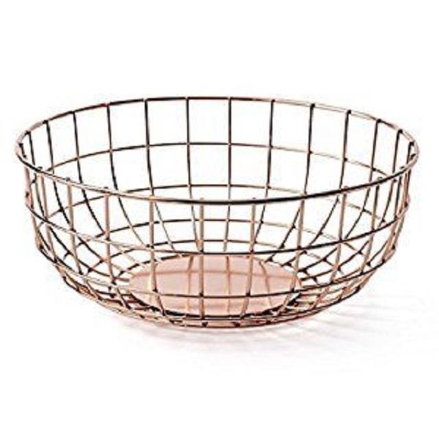 Rose Gold Color Fruit Basket Tabletop Fancy Arrival Handmade Storage Container And Bucket Round Shape Iron Wire Made Kitchenware