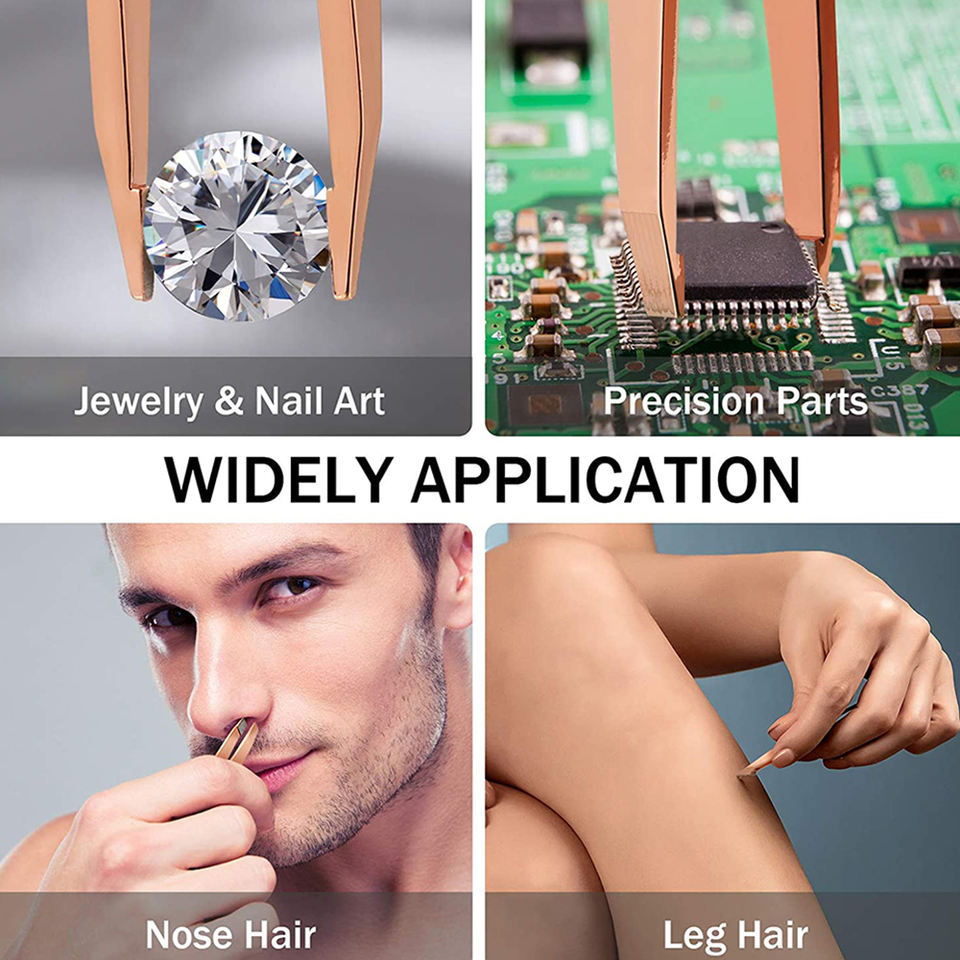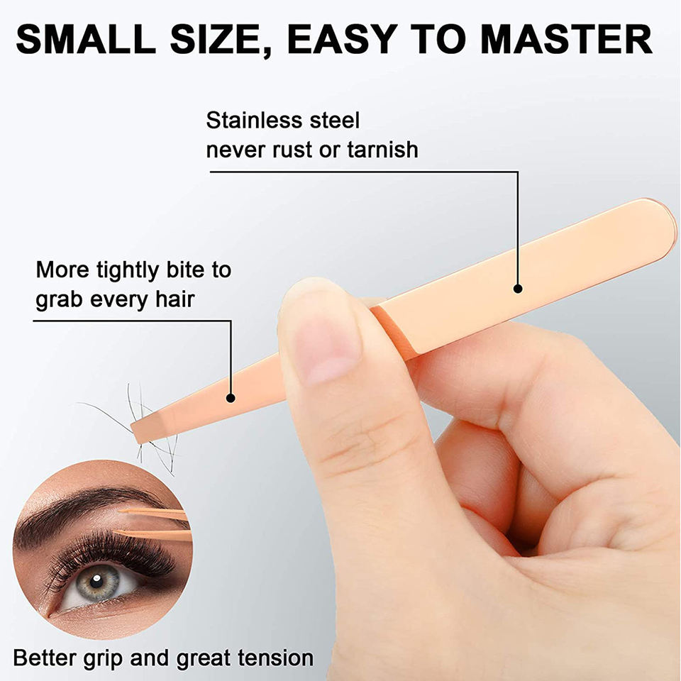 Premium Rose Gold Eyebrow Tweezers Set Pointed Tip Ingrown Hair Remover and Facial Hair Removal Tool Kit Beauty Tool