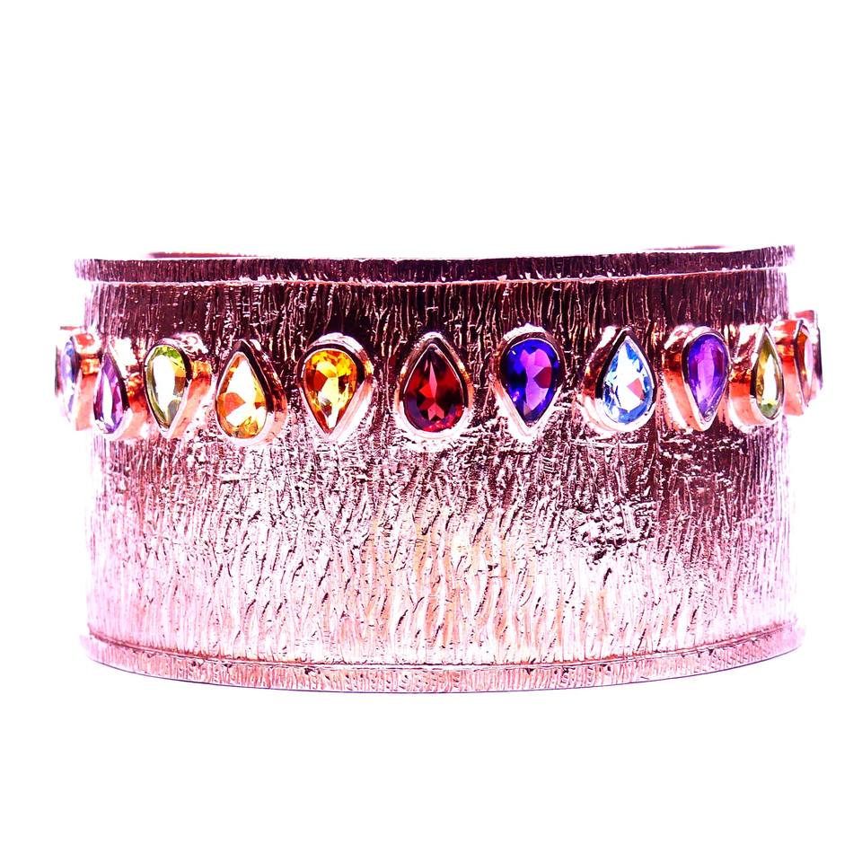 Rose Gold Cuffs Precious Pulsera Traditional Line Style 925 Sterling Silver Gemstones Classic Women Wear Cuff Bangles