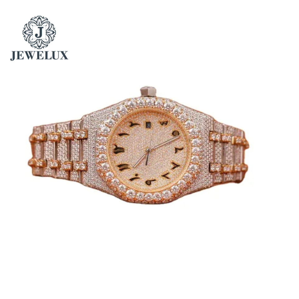 Rose Gold Dial Two Tone Automatic Watch Fully Iced Out Moissanite Diamond Luxury Timepiece for Men & Women