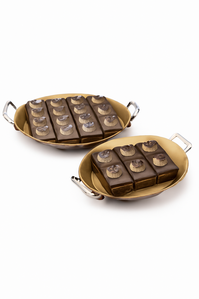 Rose Gold Flat Round Tray for Chocolate and Dry Fruit Serving Modern Designer Dish for Events Parties and Hotel Buffet Setup