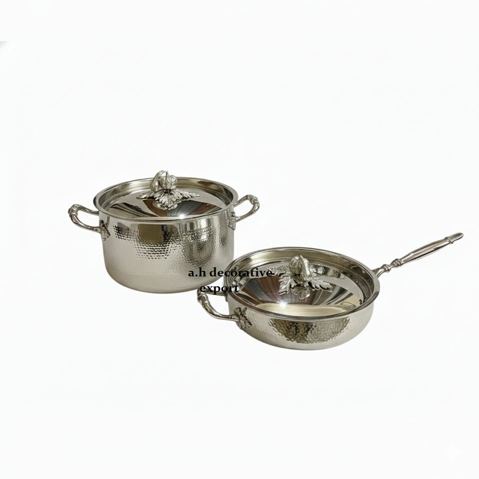 Rose Gold Hammered Hand-Hammered Europe Casserole Cooking Pots Harvest Leaf Pumpkin Handles Eco-Friendly Stainless Steel