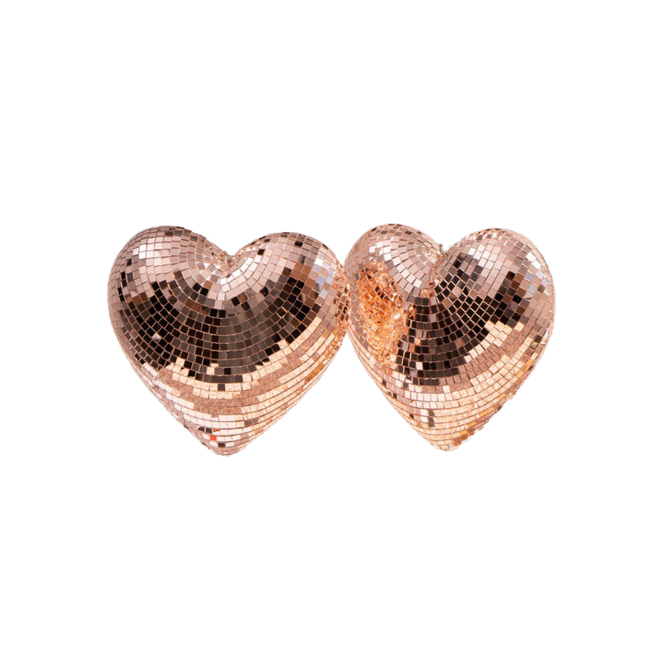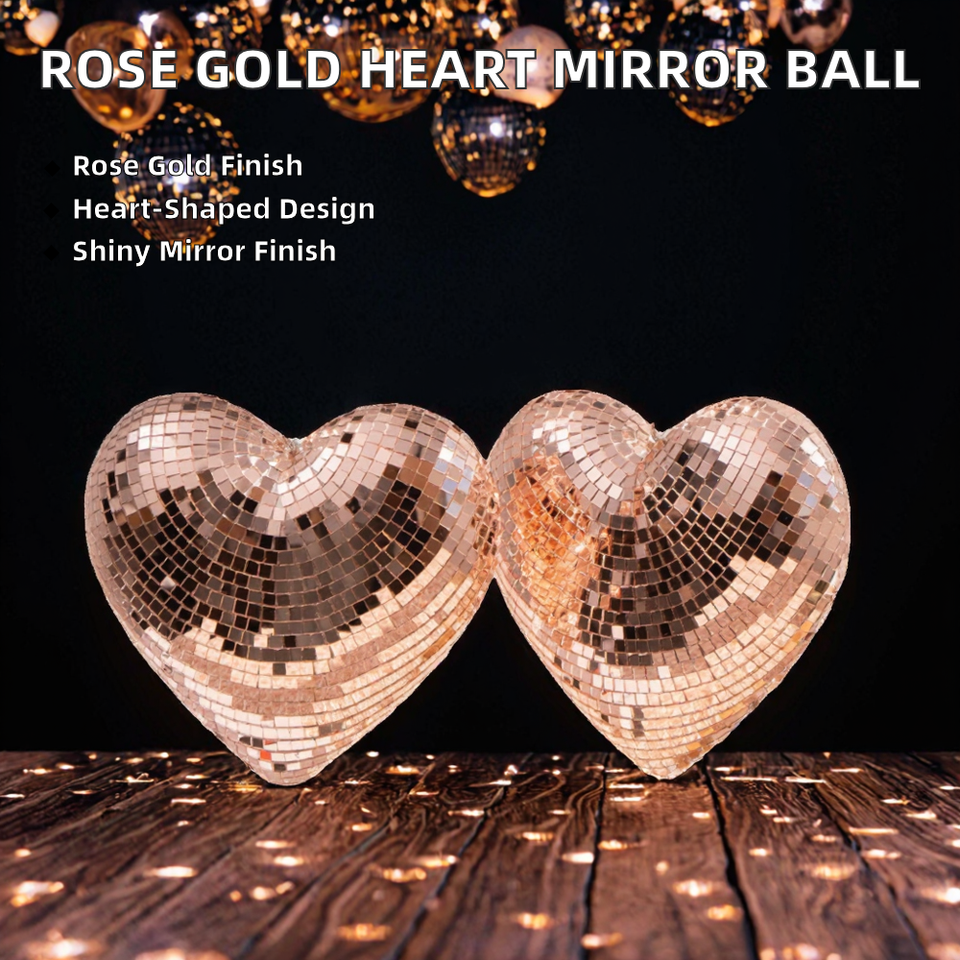 Rose Gold Handmade High Quality Heart Shaped Reflective Gravure Printed Hanging Light Glass Mirror Ball Chain Ornaments for