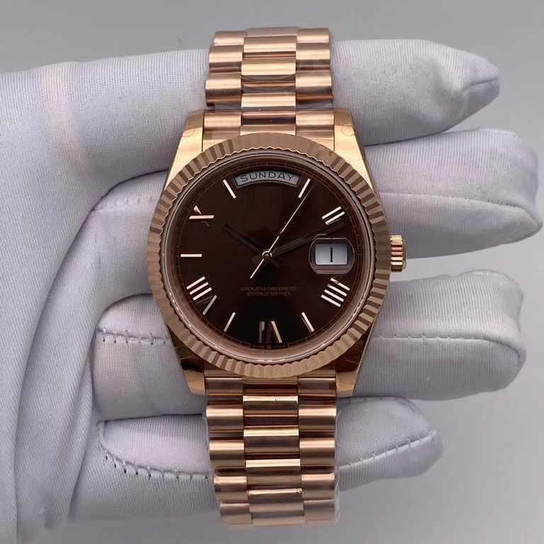 Rose Gold High Quality Limited Edition Luxury Automatic for Watch Brown Dial Fluted Bezel Vintage Modern Sapphire ETA MOVEMENT