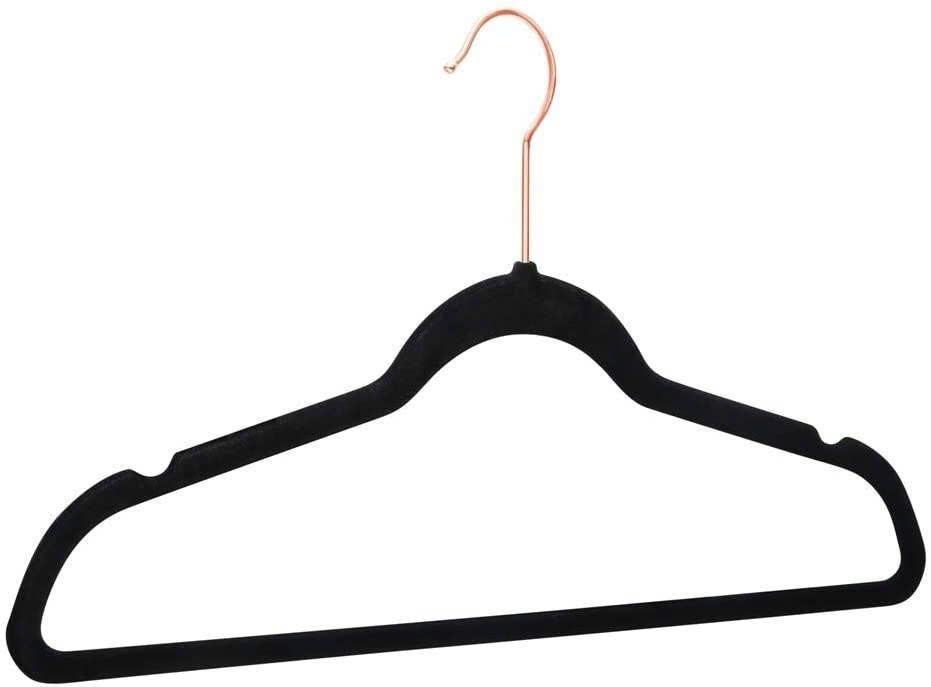 Rose Gold Hook Slim Velvet Fabric Non Slip Plastic Single Clothes Hangers for Wardrobe Tools Suits Pants Space Saving Design