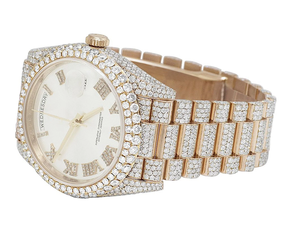Rose Gold Iced Out Men's Wrist Watch Moissanite Diamond Watch for Gift Diamond Studded Hip Hop Watch