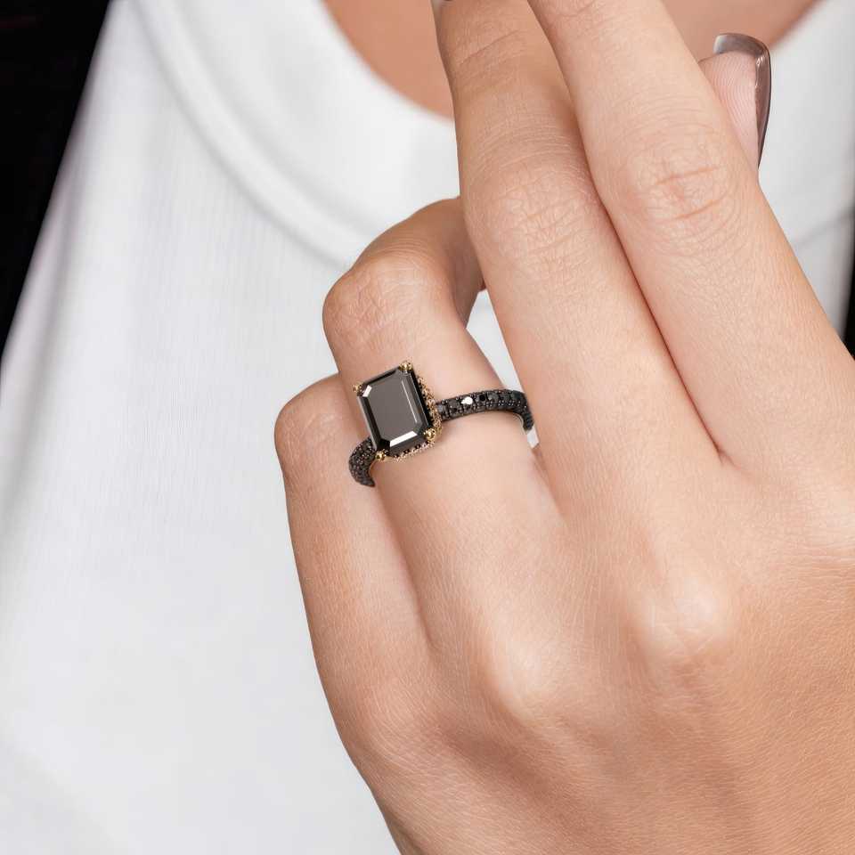 Gold Plated Black Original Moissanite Diamond Emerald Cut Engagement Ring 925 Silver Fine Jewelry Promise Gift For Bride