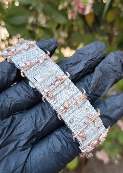 Rose Gold Mechanical Stainless Steel 8mm case Luxury Hip Hop Modern Diamond Iced-Out Thorn Bezel Square Street Watch for Unisex