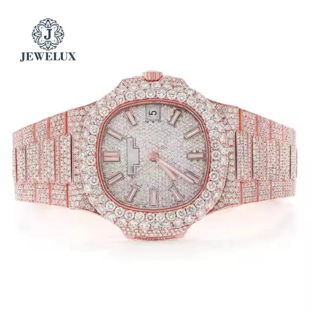 Rose Gold Moissanite Diamond Watch Automatic Quartz Movement Luxury Fashion Water Resistant Stylish Dial Charm Limited Edition