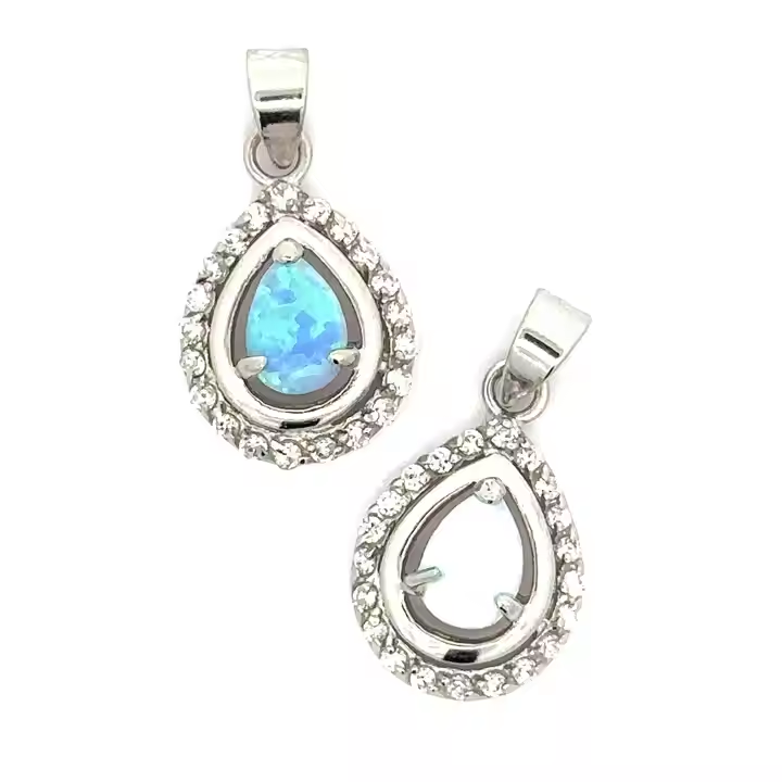 Materials:Rhodium Finished .925 Sterling Silver,Cubic Zirconia,Lab-Created Opal