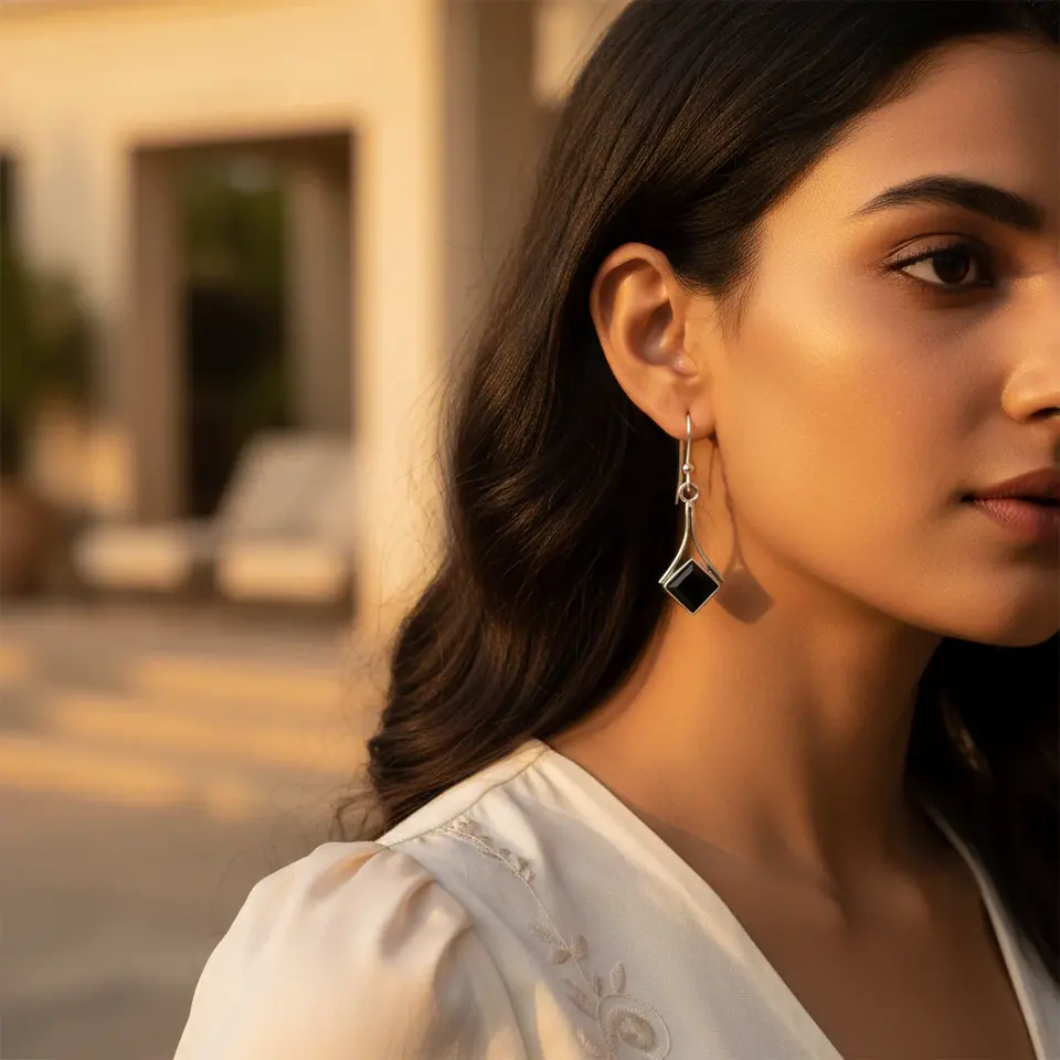 "Rose Gold Plated 925 Silver Black Onyx Drop Earrings for Women-Trendy & Daily Wear"