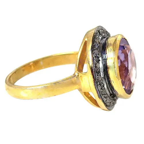 Rose Gold Plated Amethyst Moissanite Ring Fashionable Trendy Cocktail Ring Gift for Women Inlaid Style Ring