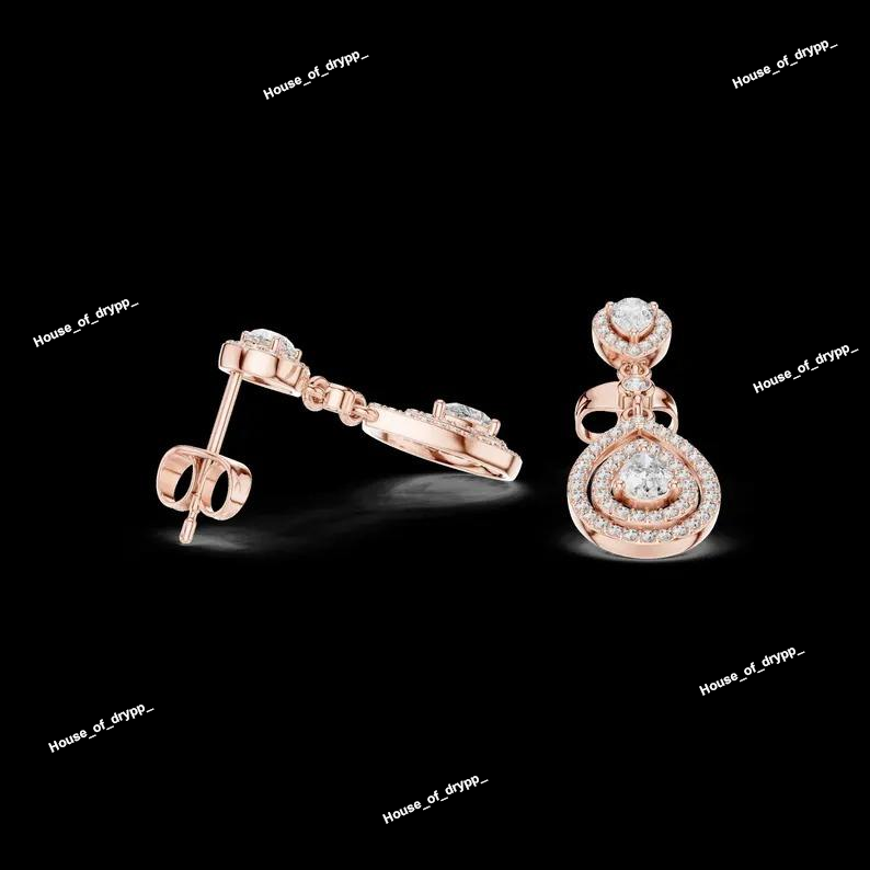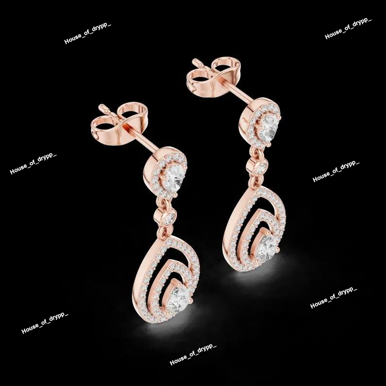 Silver Double Teardrop Dangle Earrings With Moissanite Diamond Iced Out Design Elegant Luxury Sparkle Party Wear