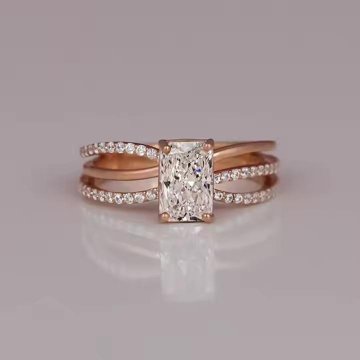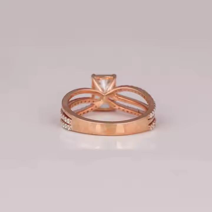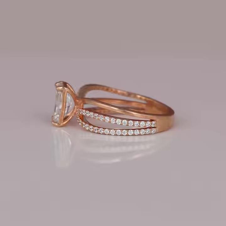 Rose Gold Plated Shank Engagement Ring 10/14/18 KT Hidden with Radiant Cut Lab Grown Diamond Perfect Birthday Gift for Women