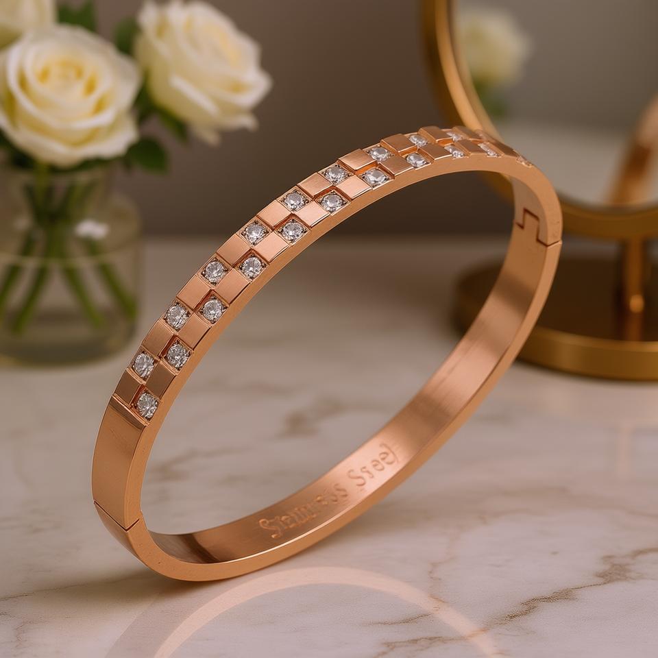 Rose Gold Plated Stainless Steel Hinged Bangle Crystal Rhinestone Fashion Bracelet For Women