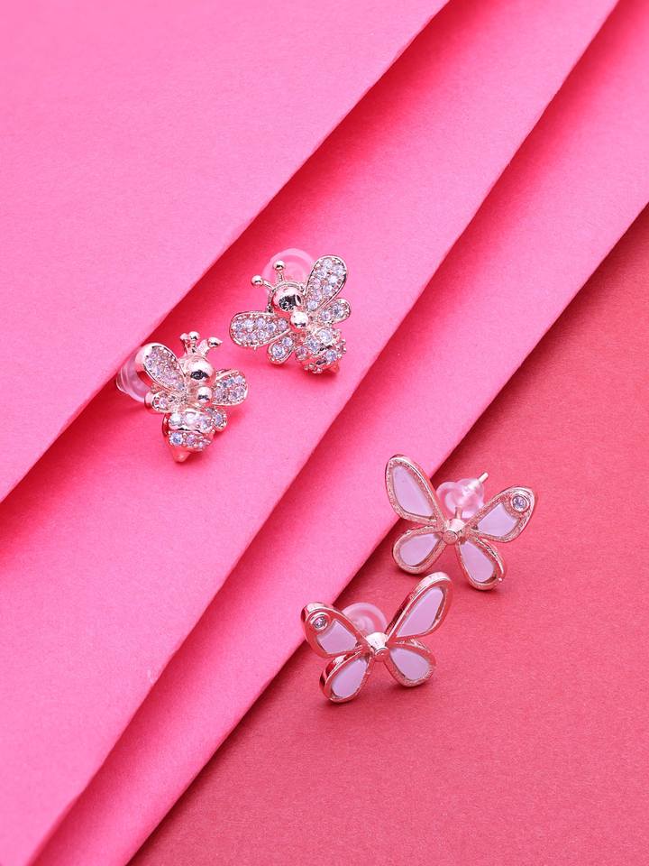 Rose Gold Plated Trendy AD Stone Stud Earrings Combo Luxury Everyday Wear Fancy Zircon Main Material Alloy Women's Party