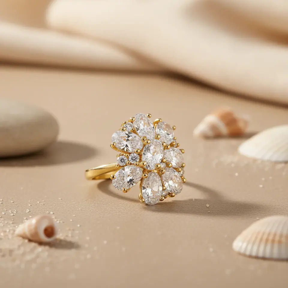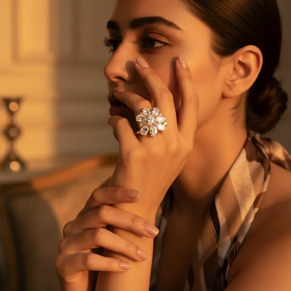 Rose Gold Plated Women's Trendy Vintage Cluster Ring White Cubic Zirconia Inlay with Rhodium Gift-worthy Design