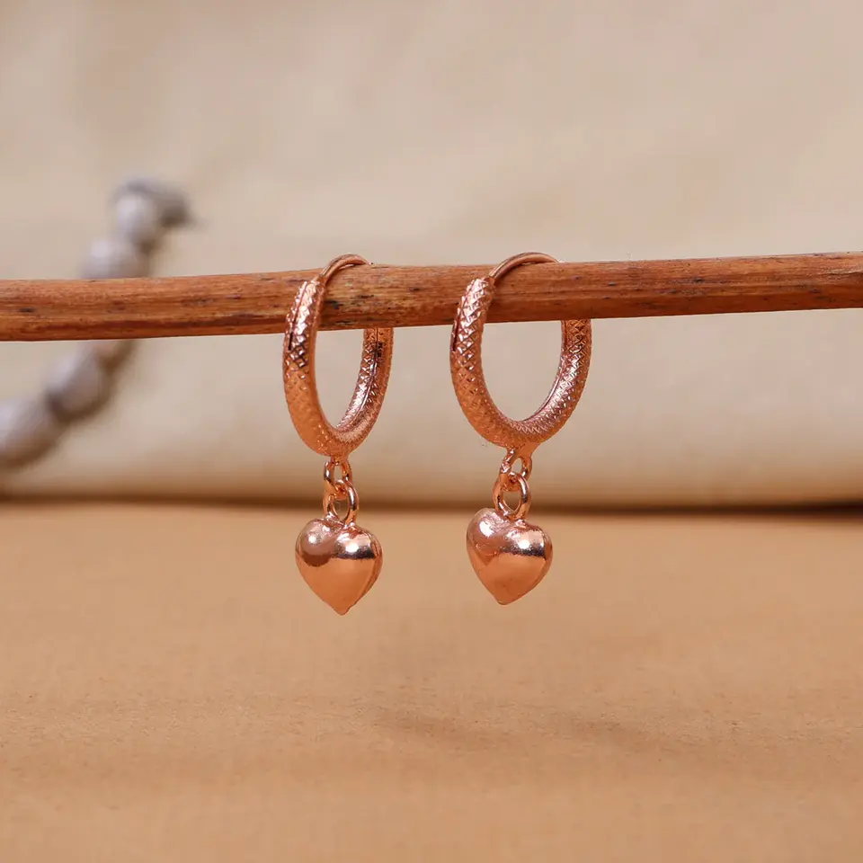 Rose Gold Plating Heart Hoop Earrings for Women Vintage Trendy Dangle Pendant Drop Jewelry Copper Material
