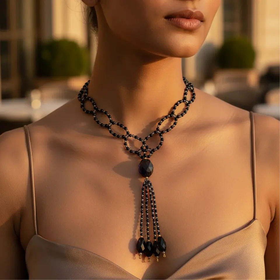 "Rose Gold Rhodium-Plated Zircon Beaded Necklace-Trendy Statement Jewelry for Women's Weddings & Gifts"