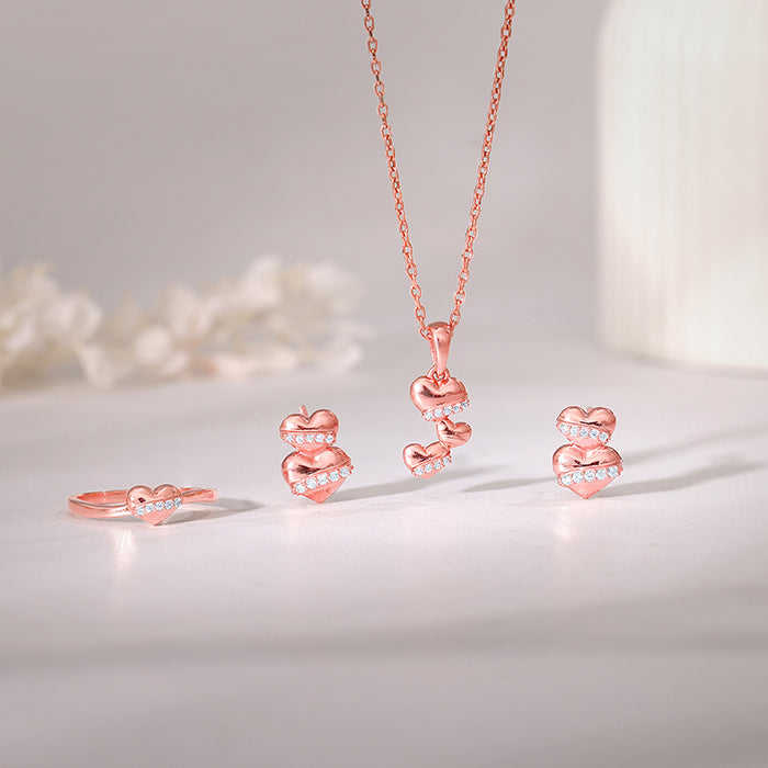 Rose Gold Triple Heart Fine Jewelry Set for Women GIVA Collection ER02956 PD02672 R01942