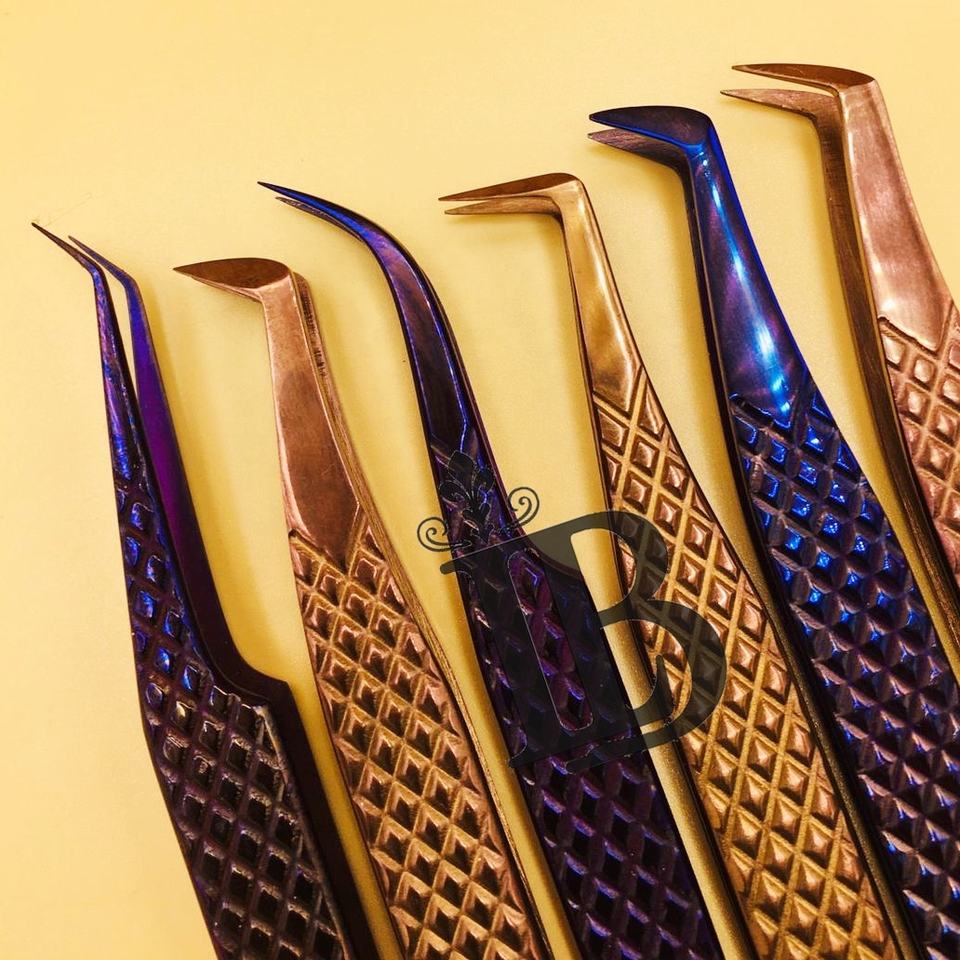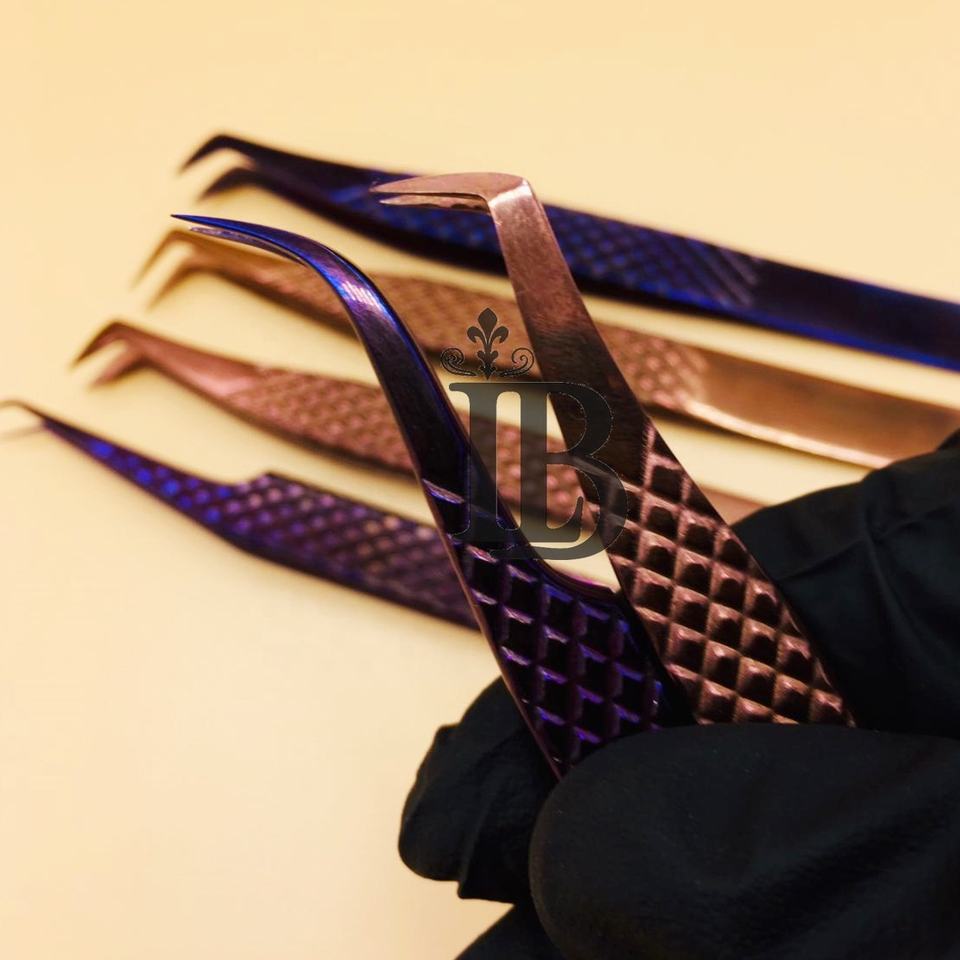 Rose Gold Tweezers Purple Tweezers Eyelash Extension Tweezers Diamond Cut Handle Curved Boot Volume Logo Offer MINK