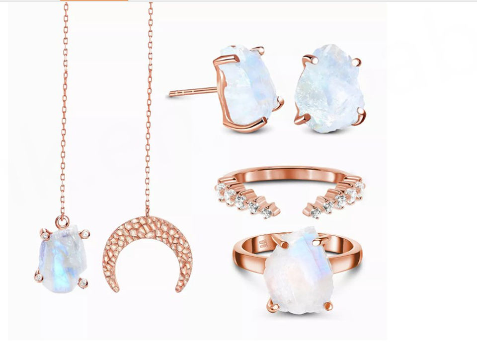 Natural Moonstone Ring Set:Fancy Moonstone jewelry