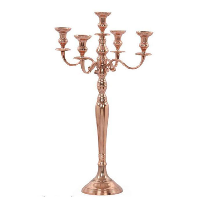 Rose Gold Wedding Events Decorative Metal 5 Arm Candelabra