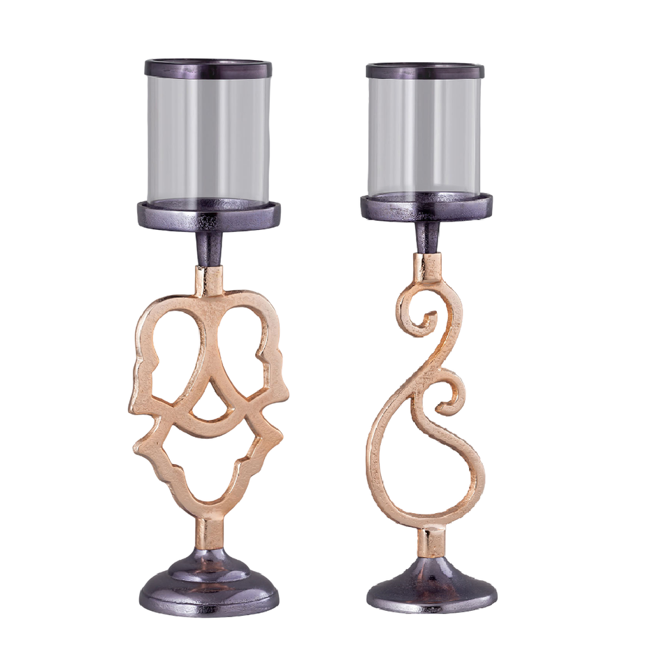 Rose Golden & Black Finishing Handmade Decorative Candelabra Candle Holder Stand Decor Alter Metal Candle Holder