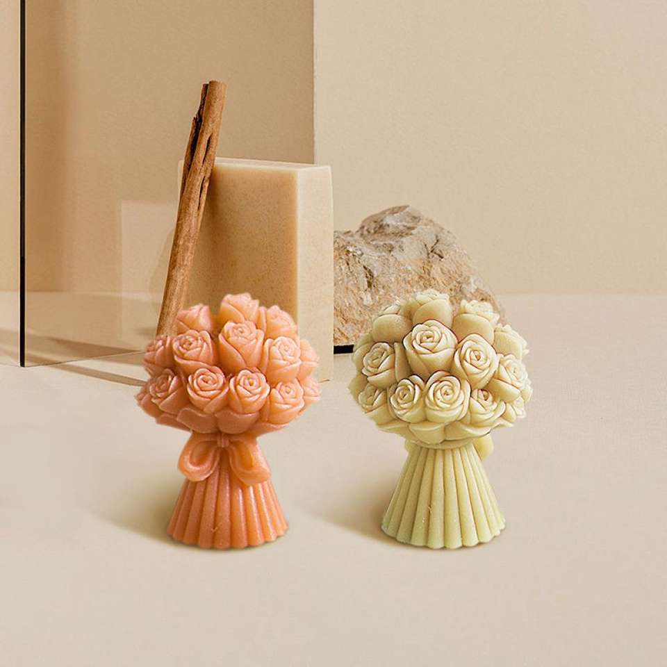 Rose Love Bouquet Aromatherapy Candle Bow Flower Gypsum Epoxy Resin Candle Silicone Mold