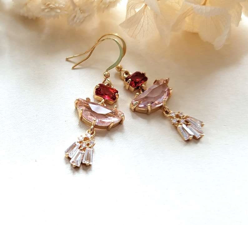 Product Name:Rose Pink Crystal CZ Drop Earrings