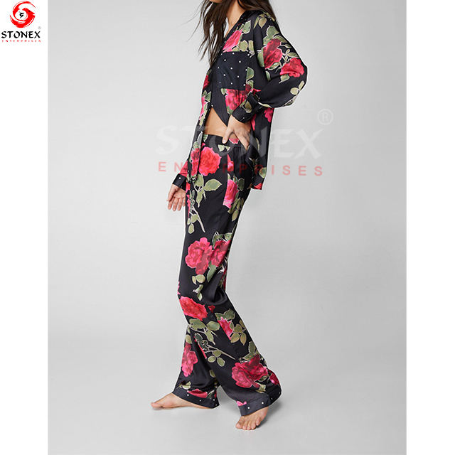 Rose Polka Dot Mix Pajama Shirt Set Adult Women Custom Design Customized Breathable Night Wear