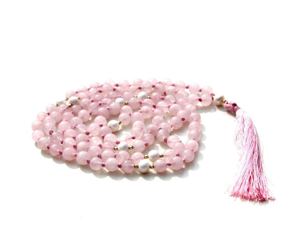 Rose Quartz 108 Mala Beads Necklace Natural Gemstone Fashion Jewelry for Spiritual Meditation Parties Gifts-Inspired Buddhism